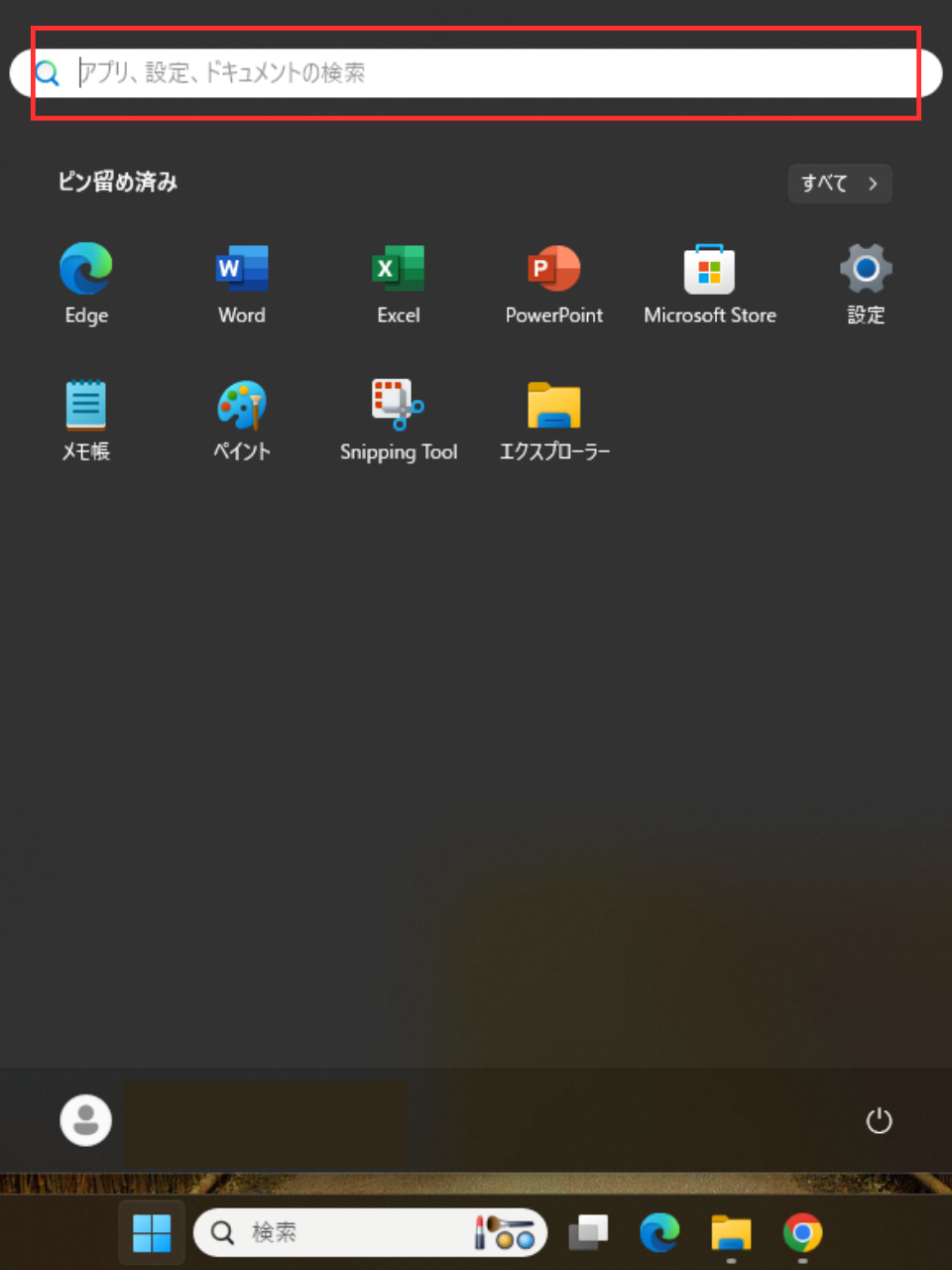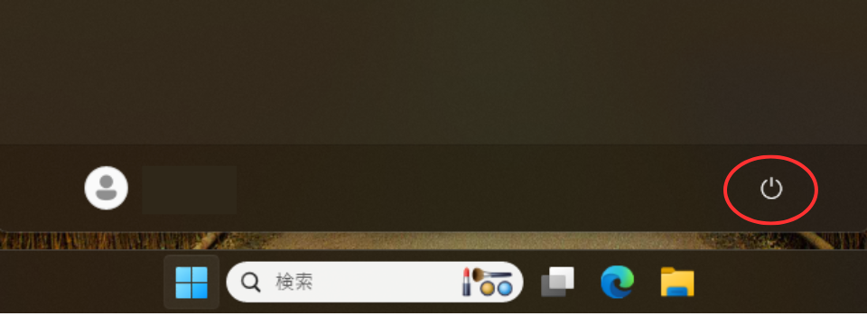 スタート画面が表示されます。 - スタート画面の右側に表示される 電源マークをクリックしてください。